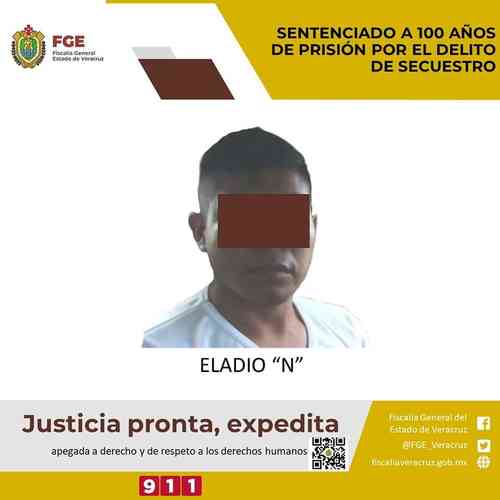 La Unidad Especializada en Combate al Secuestro (UECS) logró sentencia condenatoria de 100 años de prisión en contra de Eladio “N” por el delito de secuestro.