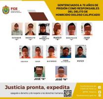 La Fiscalía General del Estado (FGE) informó que la condena se dictó tras el desahogo de pruebas durante el juicio oral 18/2025, en el que se acreditó la responsabilidad penal de Esteban “N”, Rodolfo “N”, José Rodolfo “N”, Mario “N”, Bonifacio “N”, Juan “N”, Fredy “N”, Juan “N”, Alfonso “N”, Juan Alfredo “N”, Hugo “N”, José “N” y José “N”.