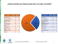 De acuerdo a las encuestas realizadas por la Universidad Veracruzana (UV) y el Grupo Consultor Santoyo, presentadas este miércoles a los integrantes del Consejo Municipal de Movilidad Urbana de Xalapa, la mayoría de los ciudadanos apoyaría la implementación de la primera fase del Plan de Movilidad.