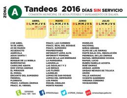 El calendario de tandeos puede consultarlo la población en la página web www.cmasxalapa.gob.mx, así como en el teléfono 2. 37. 03. 00, donde también puede solicitar el servicio de pipas de forma gratuita.