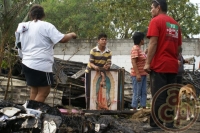 “Vengo llegando de trabajar, soy albañil, mi esposa estaba en la casa, aparentemente no le pasó nada, tenemos 7 años de vivir aquí, tengo dos hijos, uno trabajando y otro estudiante, pero ninguno estaba en casa, sólo mi esposa Maribel Martínez Tapia de 40 años de edad", sostuvo Agustín Sánchez Reyes, propietario del lote 6 que sucumbió por el fuego.