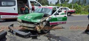 Poco después del mediodía de este viernes se registró un aparatoso choque de 2 taxis en la carretera estatal Banderilla-Martínez de la Torre, a la altura de la desviación hacia San Pablo Coapan, en territorio del municipio de Coacoatzintla.