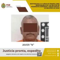 Se trata de la sentencia en contra de un sujeto identificado como Javier “N”, quien permanecerá en la cárcel durante 41, como responsable de los delitos de pederastia agravada y abuso sexual de menores de edad, en agravio de una niña de identidad resguardada.