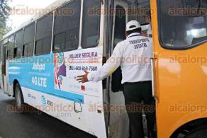 La responsable de Prensa y Género de la Dirección de Transporte, Sabina Martínez Pinto, informó que en la ciudad de Xalapa ya son 600 unidades de transporte urbano las que se adhirieron al programa “Mujer Segura” que consiste en conceder los primeros 16 asientos de cada unidad a mujeres, niñas y niños, así como a personas con alguna discapacidad.