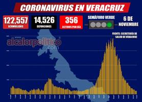 Consulta el Semáforo Epidemiológico y el Plan de Vacunación por municipio en http://coronavirus.veracruz.gob.mx; en caso de síntomas, llama al 800 012 3456 y asiste al hospital por algún evento de gravedad.