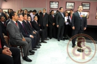 En el salón “Venustiano Carranza”, sede de la Diputación Permanente, lo esperaba la mesa directiva integrada por Eduardo Andrade Sánchez, presidente; Armando Méndez de la Luz, vicepresidente y Juan Carlos Castro Pérez, secretario; así como los coordinadores de los grupos legislativos del PRI, Jorge Carvallo Delfín; Danilo Alvizar Guerrero, del PAN; Rogelio Franco Castán, del PRD/Movimiento Ciudadano y Gustavo Moreno Ramos, del PANAL.