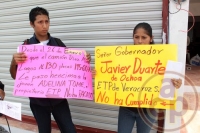 Las tres personas con cartulinas en mano, solicitaban la ayuda del Gobernador del Estado para hacer cumplir con los acuerdos tanto al concesionario como al secretario de gobierno Gerardo Buganza Salmerón.