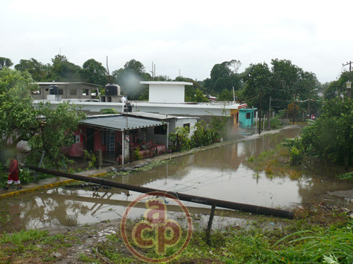Calles encharcadas de la comunidad El Limoncito, municipio de Úrsulo Galván, Ver.