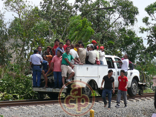 Cientos de damnificados del primer ejido a nivel nacional, Salmoral, fueron evacuados por personal de ferrocarriles y traídos a los albergues de Cardel, Ver.