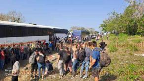 El hecho se registró, la mañana de este jueves, sobre la autopista Acayucan-Cosoleacaque, cerca del punto de Lomas de Tacamichapa, en el municipio de Jáltipan de Morelos, a donde fueron abandonados 3 autobuses en los que viajaba los indocumentados.
