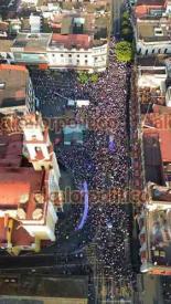 La tarde de este viernes, las calles y avenidas de la zona centro se pintaron de color púrpura, ante la manifestación masiva de agrupaciones, asociaciones, estudiantes, amas de casa, profesionistas, madres e hijas que asistieron al teatro del Estado, punto donde se concentró un primer contingente que saldría hacia la Plaza Lerdo.