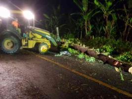 Luego de las fuertes lluvias que se registraron ayer en los municipios de Altotonga, Atzalan, Jalacingo, Tlapacoyan, Martínez de la Torre y San Rafael se reportó la caída de un árbol en la carretera Tezihutlán-Perote, concretamente en el tramo Santa Cruz-Tlapacoyan.