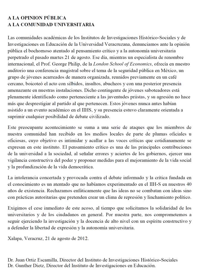 Académicos de la UV, atacados para acallar voces críticas en sus Institutos