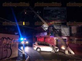 Al llegar al crucero antes mencionado, el automovilista perdió el control y se impactó contra un poste de luz, provocando un apagón en toda la zona.