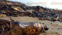 Más de 30 metros de playa en Coatzacoalcos se encuentran impregnadas, desde la tarde del pasado domingo, de lo que podría ser chapopote o algún tipo de combustible.