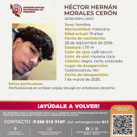 Según las fichas de búsqueda, Héctor Hernán Morales Cerón mide aproximadamente 1.70 metros, tiene ojos café oscuro, piel morena clara y cabello negro corto ondulado. Entre sus señas particulares destacan perforaciones en ambas orejas y un tatuaje en el antebrazo derecho.