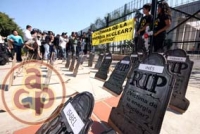 Su manifestación estuvo acompañada de un montaje de lápidas con nombres comunes con las que cuestionaron si ellos habrán muerto por culpa de la nucleoeléctrica. "Nosotros quisimos hacer de este montaje una oportunidad, precisamente para mostrar que hay personas y hay víctimas que están sufriendo los impactos de la radiación proveniente de la Nucleoeléctrica y que aún así no se han tomado las medidas necesarias tan solo para investigar", abundó.