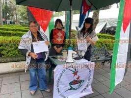 Activistas en Xalapa exhortaron a la ciudadanía a cambiar sus cuentas bancarias fuera de HSBC para buscar poner un freno a la guerra en Palestina, haciendo presión para que el banco abandone sus negocios con la empresa que dota de armas a Israel.