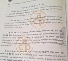 En entrevista, Segura Agüeros explicó que desde el 21 de marzo de 2024 cuenta con una sentencia a su favor dentro del expediente 293/2022, en el que se condena a la empresa Nueva Walmart de México, S. de R.L. de C.V., operadora de Bodega Aurrera en Minatitlán, a reinstalarla en su puesto o, en su defecto, pagarle indemnización constitucional, salarios caídos y demás prestaciones laborales. Tras la negativa de la empresa a reinstalarla, se realizó una diligencia de embargo el 10 de julio de 2024. En respuesta, la empresa promovió un juicio de amparo que fue resuelto por el Segundo Tribunal del Décimo Circuito el pasado 12 de junio de 2025, el cual negó la protección federal a Walmart y confirmó la sentencia laboral.