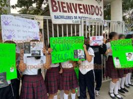 Alumnos de la Escuela de Bachilleres de Martínez de la Torre Diurna se manifestaron en la entrada del plantel, la mañana de este miércoles, para denunciar a uno de los profesores, a quien acusan de ser un acosador sexual, por lo que demandaron su destitución.