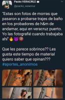 Fue una joven quien publicó en su perfil de Facebook que mediante una cuenta de Twitter llamada Packs Veracruz, un ex trabajador de esta tienda subió fotografías de jóvenes semidesnudas cuando se están probando ropa al interior de los probadores de esta tienda de ropa.