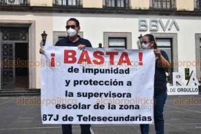 Docentes y personal de la Telesecundaria “Jaime Torres Bodet”, ubicada en la colonia Campo de Tiro, se manifestaron para solicitar un cambio de adscripción, debido a las agresiones y malos tratos por parte de la supervisora de la zona escolar 87J, Guadalupe Rivera Roa.
