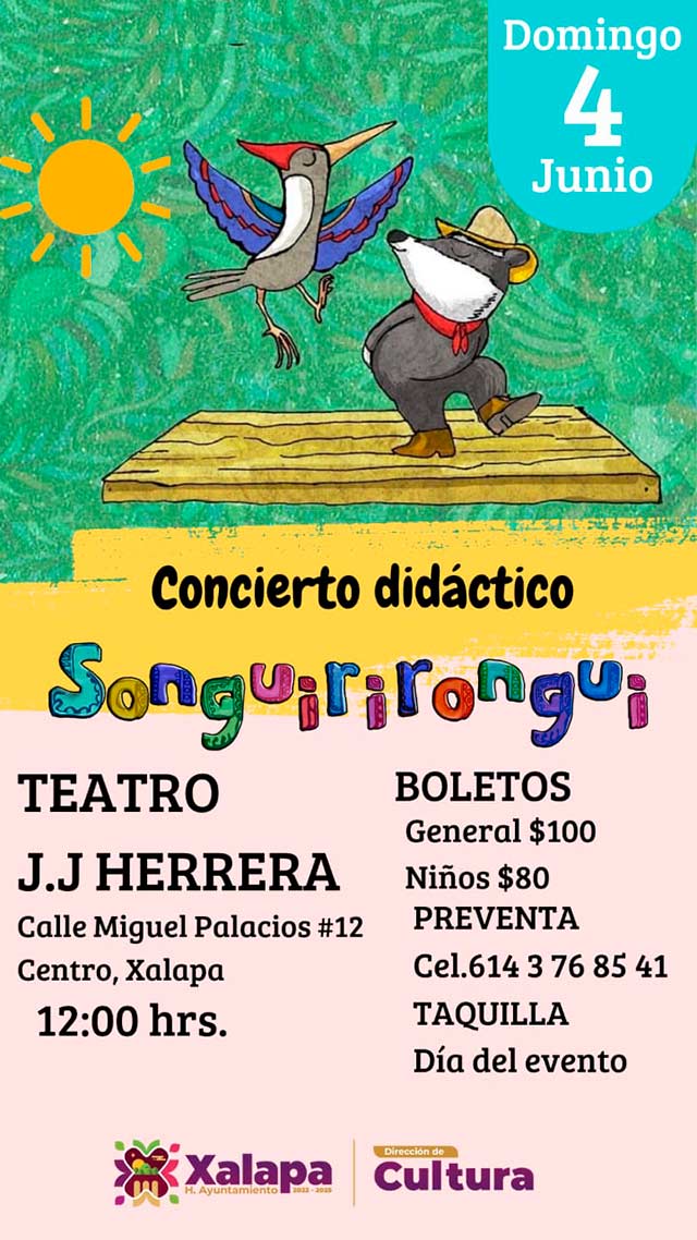 “Songuirirongui”, es el nombre del concierto didáctico con música original, creada especialmente para las infancias, que se presentará el domingo 4 de junio a las 12:00 horas, en el Teatro “J.J. Herrera”, en la calle Miguel Palacios, en pleno Centro Histórico. Boletos para niños en $80 y para adultos en $100.
