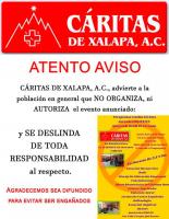 La Asociación Civil Cáritas, de Xalapa, advirtió a la población en general que no se deje embaucar por personas que utilizan el logo de esta agrupación para promover un evento, presuntamente organizado por Cáritas; cosa que es falsa.