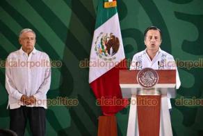 “Por eso coincidimos plenamente con la estrategia que usted ha trazado para atender la problemática de inseguridad derivada de la desesperación social por la aplicación de años de políticas totalmente equivocadas y que aquí en Veracruz fueron todavía dimensionadas por la corrupción. Ahora estamos resarciendo ese daño y vamos a continuar en ese camino”, expresó al Presidente de la República.