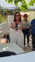 La mandataria llegó a votar para la elección de alcalde en la casilla 777 sobre la calle Miguel Ángel de Quevedo, en la colonia María de la Piedad, para posteriormente hacerlo para el Poder Judicial de la Federación (PJF) y Poder Judicial del Estado en la casilla seccional en una escuela en la calle Cuauhtémoc.