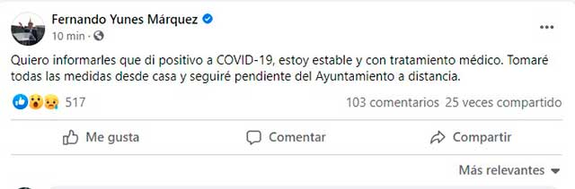 Alcalde del Puerto de Veracruz, Fernando Yunes Márquez, da positivo a COVID-19