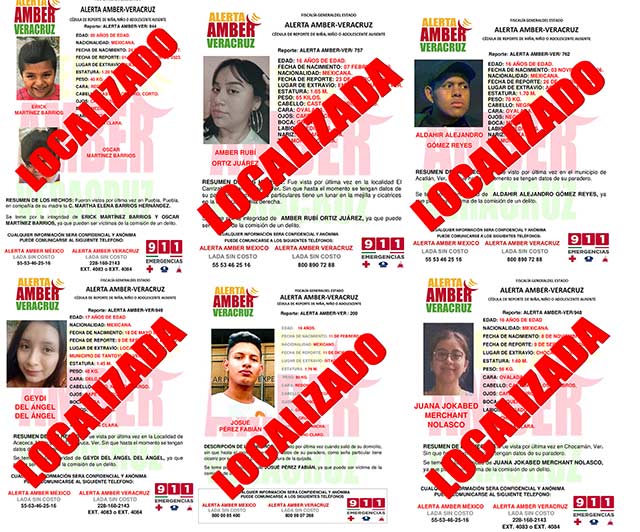 La Coordinación Estatal del ProgramaAAMBER-VER, informa la desactivación de la Alerta Amber-VER de Oscar Martínez Barrios Y Erick Martínez Barrios, Amber Rubi Ortiz Juarez, Aldahir Alejandro Gomez Reyes, Geydi Del Angel Del Angel, Josué López Fabián y Juana Jokabed Merchant Nolascon.