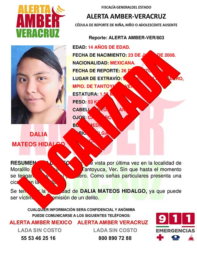 El programa Alerta Amber Veracruz, solicita su colaboración para laDESACTIVACIÓN