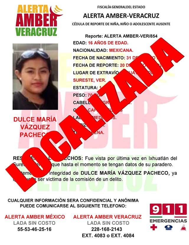 El programa Alerta Amber Veracruz, solicita su colaboración para laDESACTIVACIÓNde la