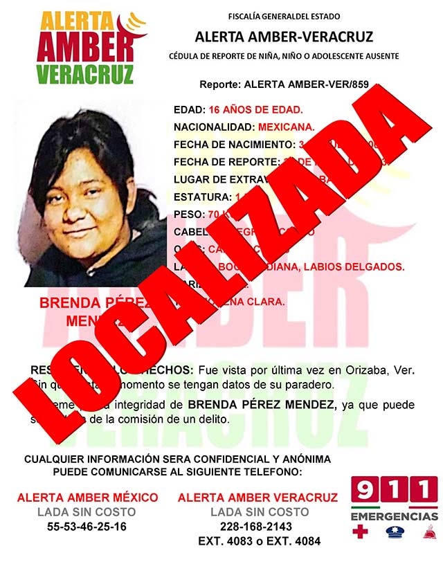 El programa Alerta Amber Veracruz, solicita su colaboración para laDESACTIVACIÓNde la