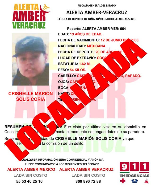El programa Alerta Amber Veracruz, solicita su colaboración para laDESACTIVACIÓNde la