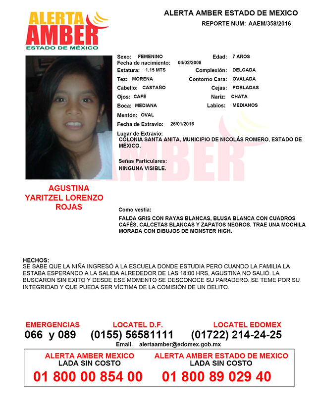 Alerta Amber Agustina Yaritzel Lorenzo Rojas