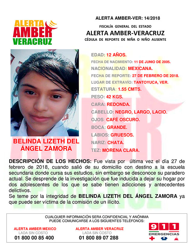 Alerta Amber Belinda Lizeth del Ángel Zamora