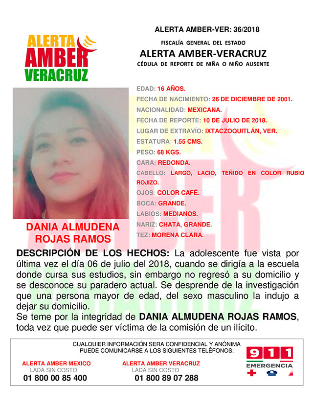 Alerta Amber para Dania Almudena Rojas Ramos