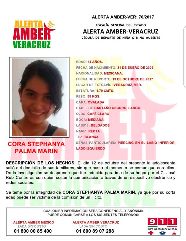 Alerta amber por desaparición de Cora Stephanya Palma Marín