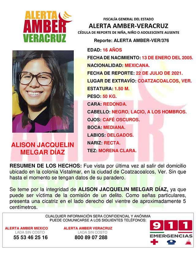 Alerta Amber Veracruz - Alison Jacquelín Melgar Díaz