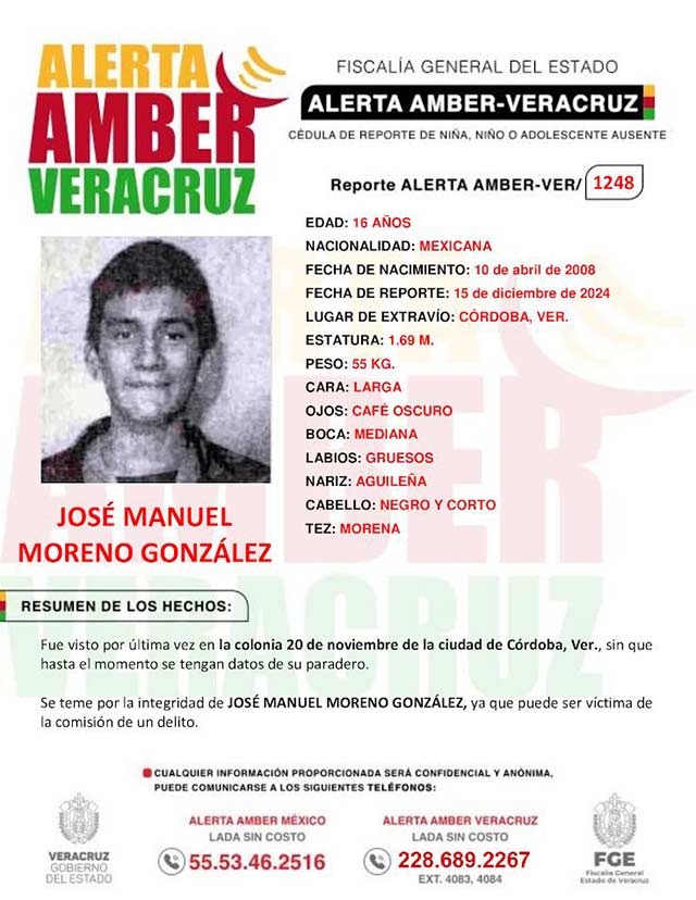 Alerta Amber Veracruz para localizar José Manuel Moreno González