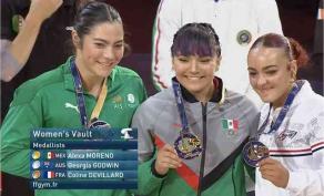 La joven mexicana dominó en modalidad de salto, obteniendo el primer lugar; también logra el tercer puesto en prueba de piso