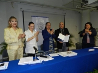 En la ceremonia de toma de protesta de Pérez Morales como nuevo vicerrector también estuvieron presentes, a la mesa principal, las secretarias Leticia Rodríguez y Clementina Guerrero, así como la vicerrectora saliente.
