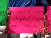 Las madres de familia dijeron “los baños está pequeñitos, sin agua, son nada más nueve para más de 200 alumnos de las licenciaturas. Sólo hay dos mesitas para que puedan comer los alumnos en los recesos”.