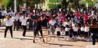 En el desfile cívico deportivo, se contó con la presencia de los alumnos de la telesecundaria Adolfo López Mateos y el Tebaev Medellín, escuelas de preescolar de los planteles Josefina Ramos del Río y Estefanía de Castañeda, quienes realizaron algunas tablas gimnásticas.