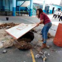Un socavón posiblemente causado por la filtración de agua ha obligado a la directiva y padres de familia de la escuela primaria “Orizaba” a mantener cerrada la cancha de la institución desde el pasado mes de febrero.