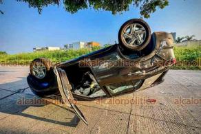 La mañana de este domingo, presuntamente por exceso de velocidad, el conductor de una camioneta perdió el control y se estampó contra un árbol, para luego dejar el vehículo abandonado llantas arriba, sobre la avenida principal del fraccionamiento Lagos de Puente Moreno.