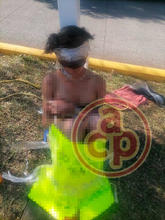 Emiliano Zapata, Ver., 16 de enero de 2023.- Joven señalado de presuntamente haber robado en vivienda del fraccionamiento Quetzal, fue amarrado a un poste y dejado desnudo junto al letrero “Esto me pasó por rata”. La Policía Municipal lo detuvo y puso a disposición de las autoridades.