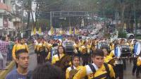 Con la autorización de Protección Civil, dio inicio el desfile, aún con un poco de llovizna, donde siete bandas de diferentes escuelas con mil 200 estudiantes amenizaron el recorrido que se dirigía al Estadio “Heriberto Jara Corona”.